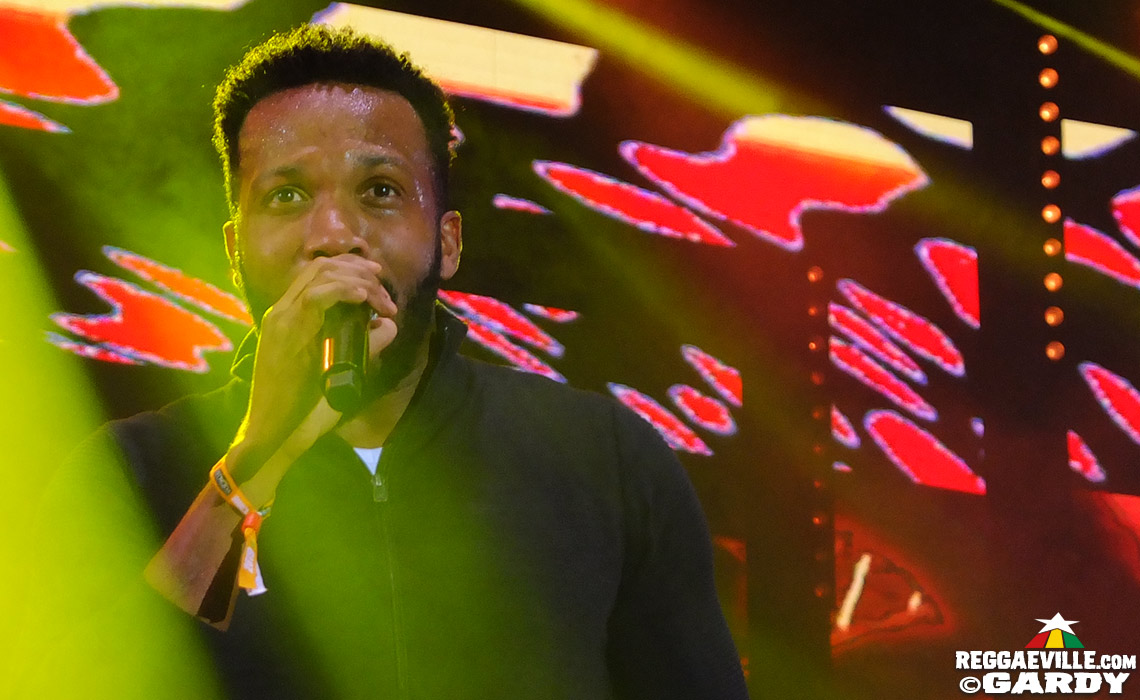 A quick trip to Stage Green is rewarded with a soulful performance by U Brown, who is backed by another Polish DJ-legend by the name of Ras Bass. After listening to his classic Pass The Tu Sheng Peng, however, we have to return to the Red Stage in order not to miss the grand Oku Onuora. And what a sight he is! Despite (or because of) his 67 years of age, despite (or because of) the hardships he's gone through in life, he delivers a fierce, energetic and forceful performance, accompanied by a simple but completely sufficient band of bass, drums and guitar. Both older pieces and excerpts from his latest album I've Seen are part of his set, and although not all people present might understand all of what he says, one red hot topic is of central concern to the artist: "You know what is going on at the borders. People have to flee from terrorism and we don't like it!"