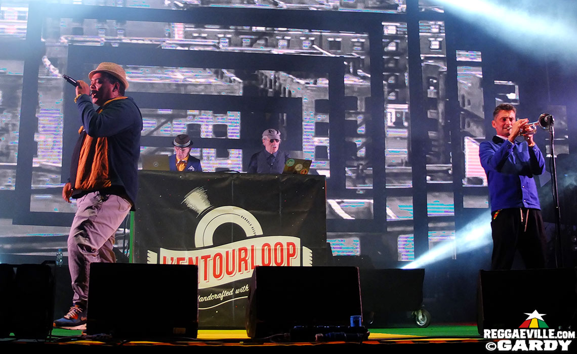 Among the spectators, Agent Sasco and Oku Onuora can be seen, taking in the festival's atmosphere in preparation of their respective appearances tomoorrow. But hey, we are in the here and now, and the stage is now changed over for the next big act of the night: The Congos and Pura Vida! It's the latter who open the show, and while the Belgian band is tight and on point, the vocals of singer Bregt keep trailing off, both in singing and talking, so that he's hardly understood at all. Good thing that, with veteran singers Congo Ashanti Roy, Cedric Myton, Watty Burnett and Kenroy Ffyffe, the focus is on their formidable voices, and although they need the first track to warm up, their show is a pure pleasure, for both eyes and ears. Songs like We Nah Give Up, Revolution and the danceable La La Bam Bam bear proof of The Congo's extensive catalogue, and of course they close with their trade-mark Row, Fisherman Row.