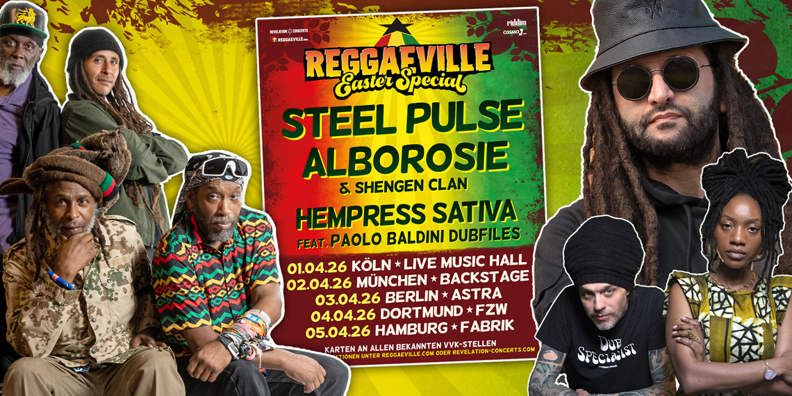 We are proud to announce the lineup for the Reggaeville Easter Special 2026 with concerts in Cologne, Munich, Berlin, Dortmund & Hamburg: